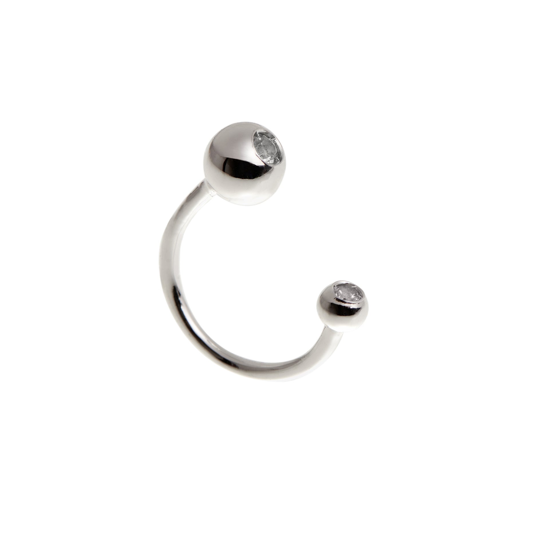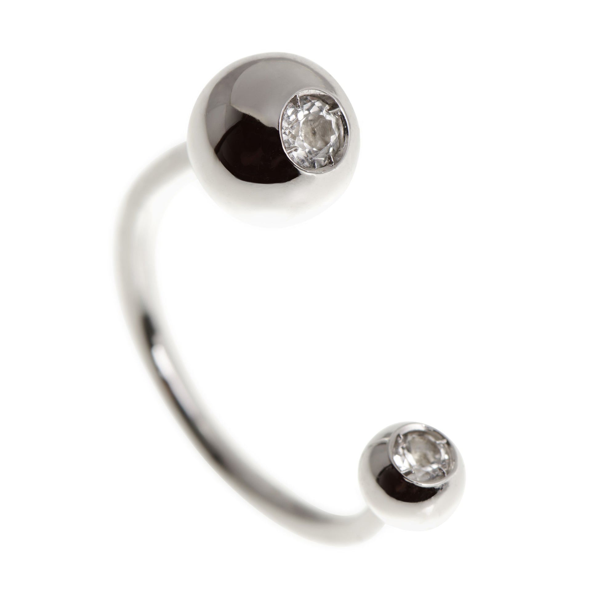 O anel Thais é feito em ouro branco 18k e ajustável ao dedo.