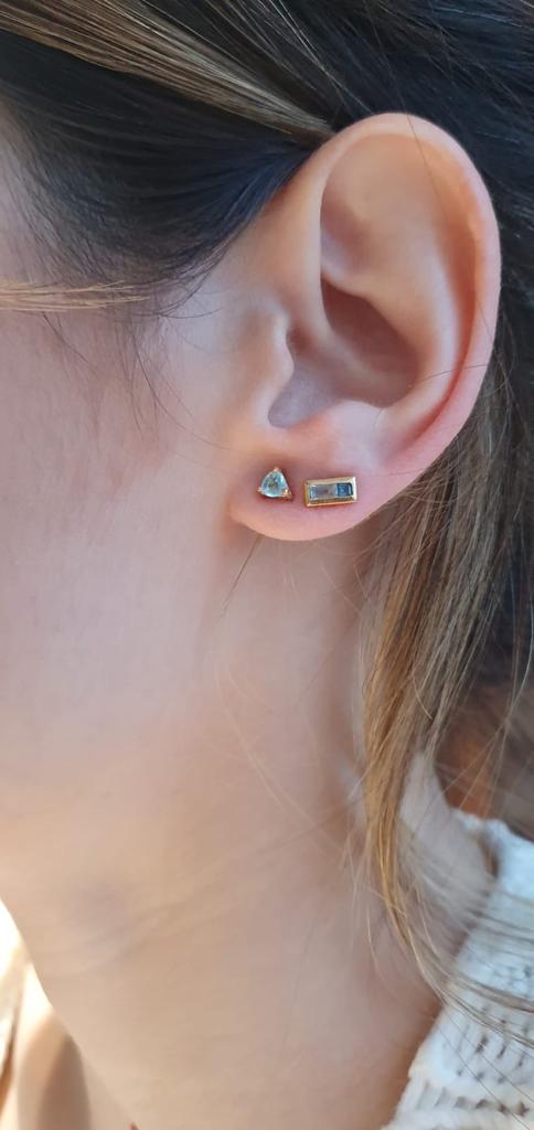 brinco em ouro 18k com topázio london 2mm e topázio sky 4x2mm.