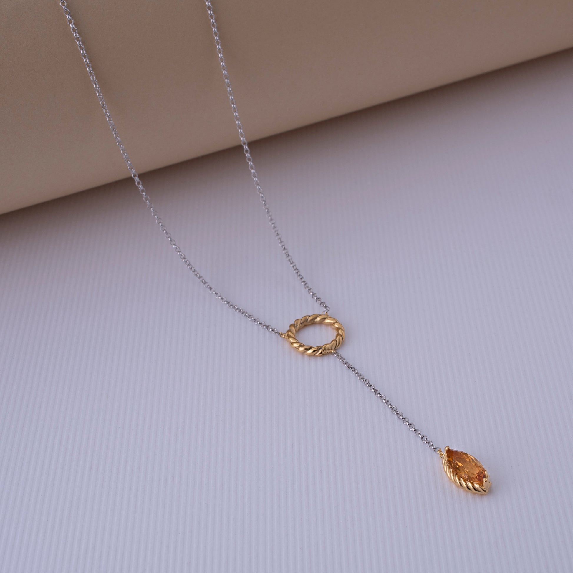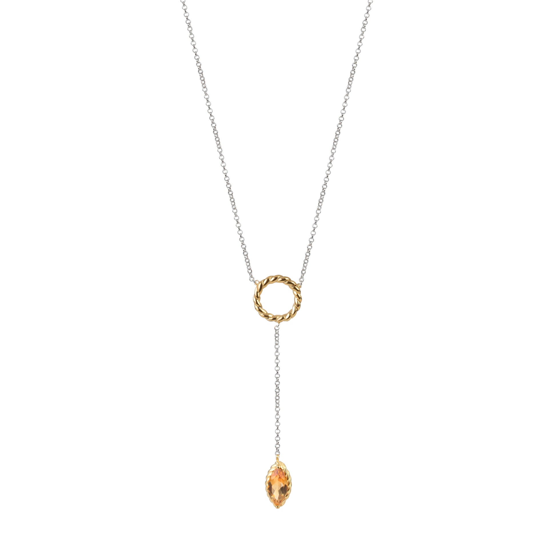 Colar em ouro amarelo 18k com citrino e corrente em ouro branco 18k.